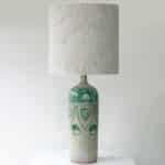 Beautiful ceramic table/floor lamp. Custom made green lampshade by René Houben.
