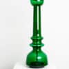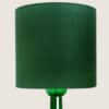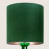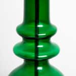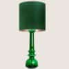 The glass table lamp features a bright green transparent base with a chrome rod running through the center. Finished with a custom made green shade by R. Houben. The innershade is bronze colored and illuminates beautifully.