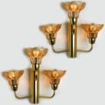 Pair of Flower Glass and Brass Wall Sconces, Germany, 1960s