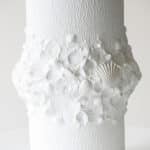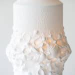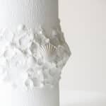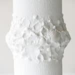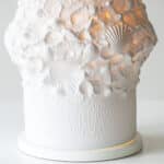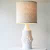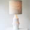 This decorative porcelaine base by Kaiser which illuminates from the inside, decorated with a pattern of seashells, fits perfectly with the custom made silk shade By R. Houben.