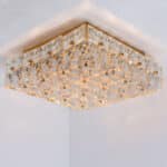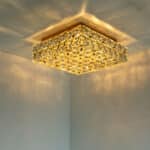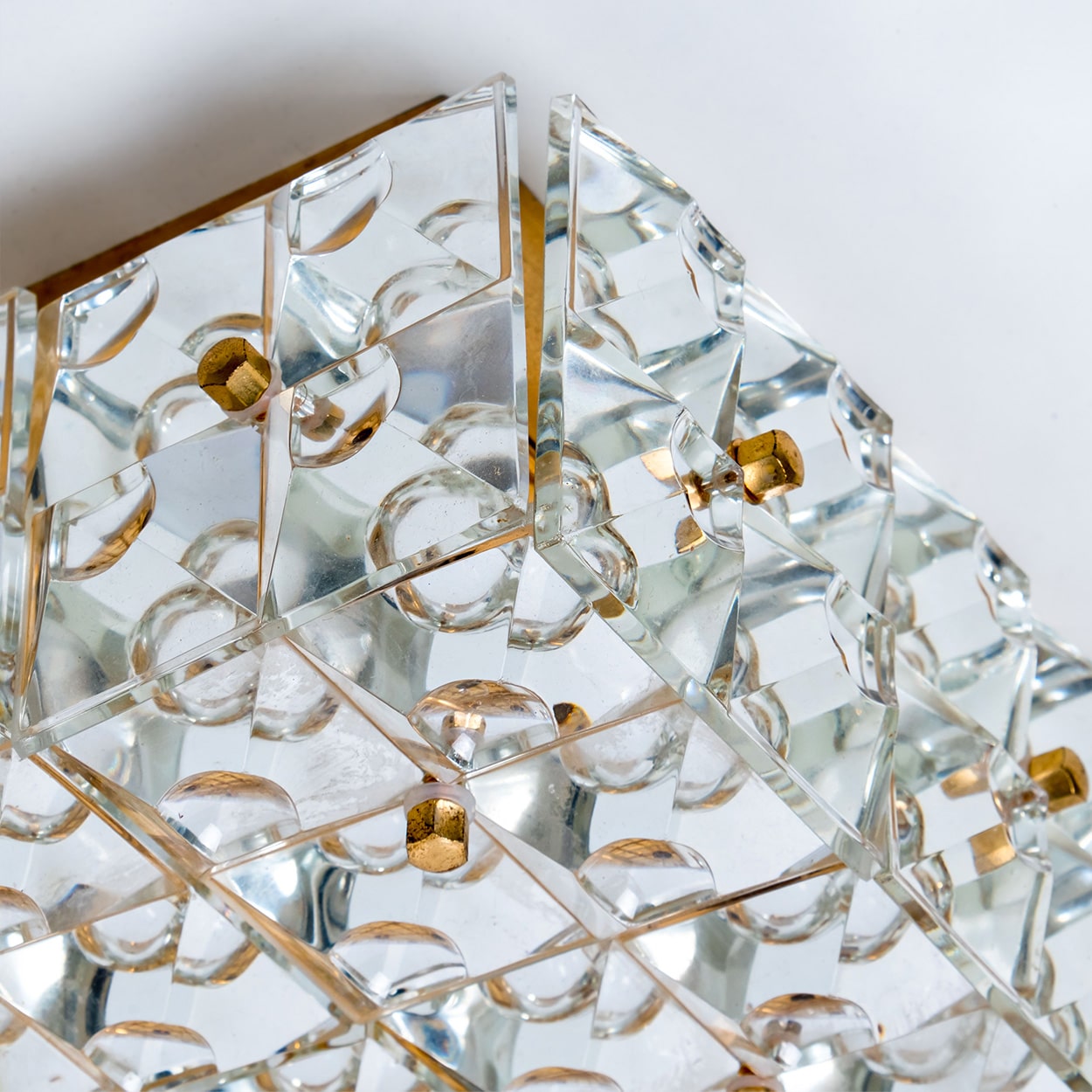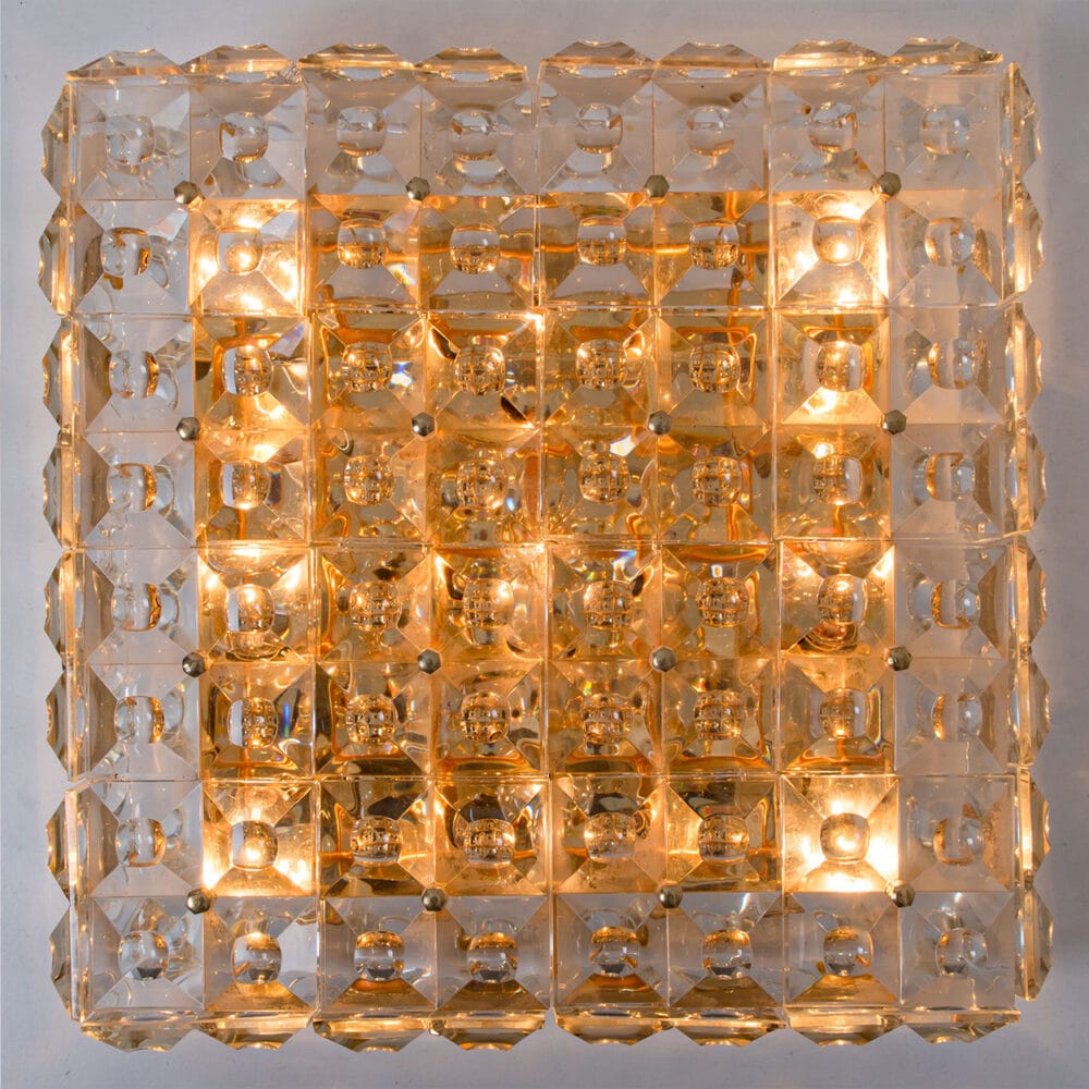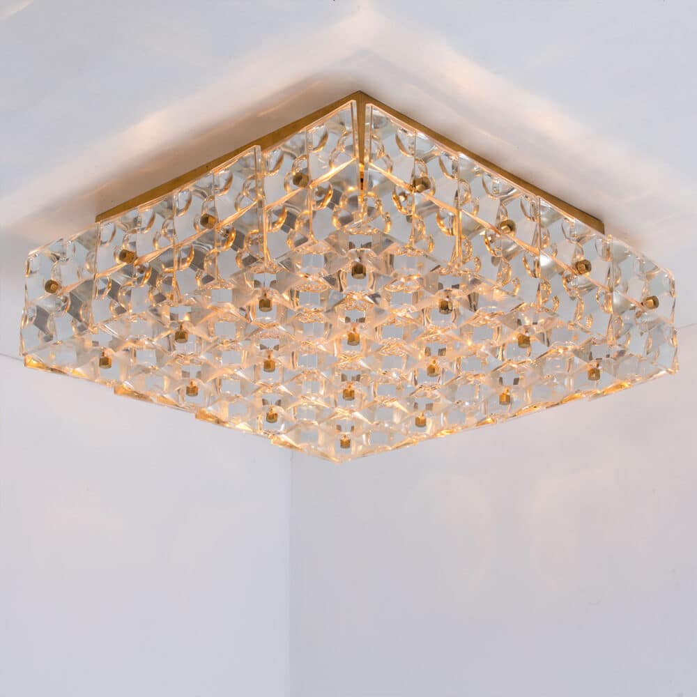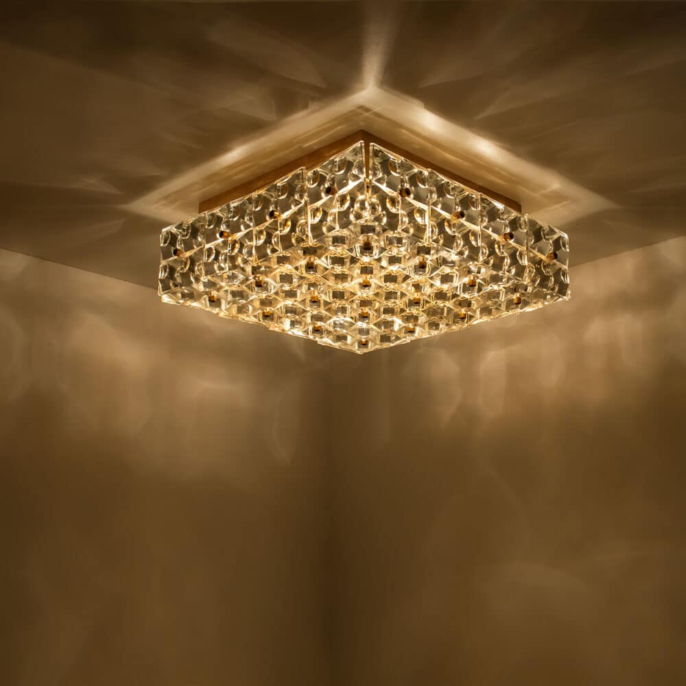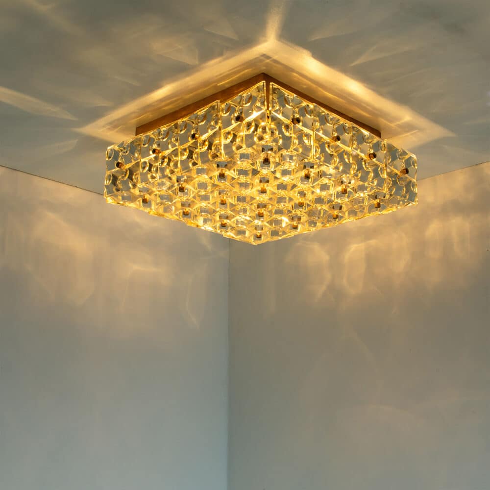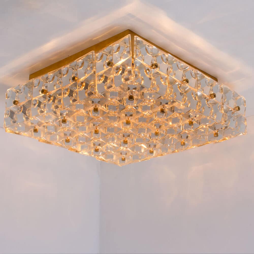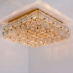 Kinkeldey is German manufacturer of high-end lighting fixtures. The company attracted international attention when they won the prestigious IF Design Award in 1969 with a chandelier fitted with prism cut crystals. During the 1970s Kinkeldey produced a number of variations on this award winning model, like the one offered here. Although these lamps show the same quality as fixtures of companies like Bakalowits, Lobmeyer and Palwa, the Kinkeldey models tend to be more modern in their design approach.