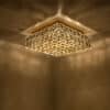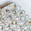The crystals are meticulously cut in such a way that the radiate the light of the bulbs in different directions.