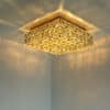 Cleaned, well-wired and ready to use. The flush mount can be disassembled and the crystals individually wrapped for easy transport.