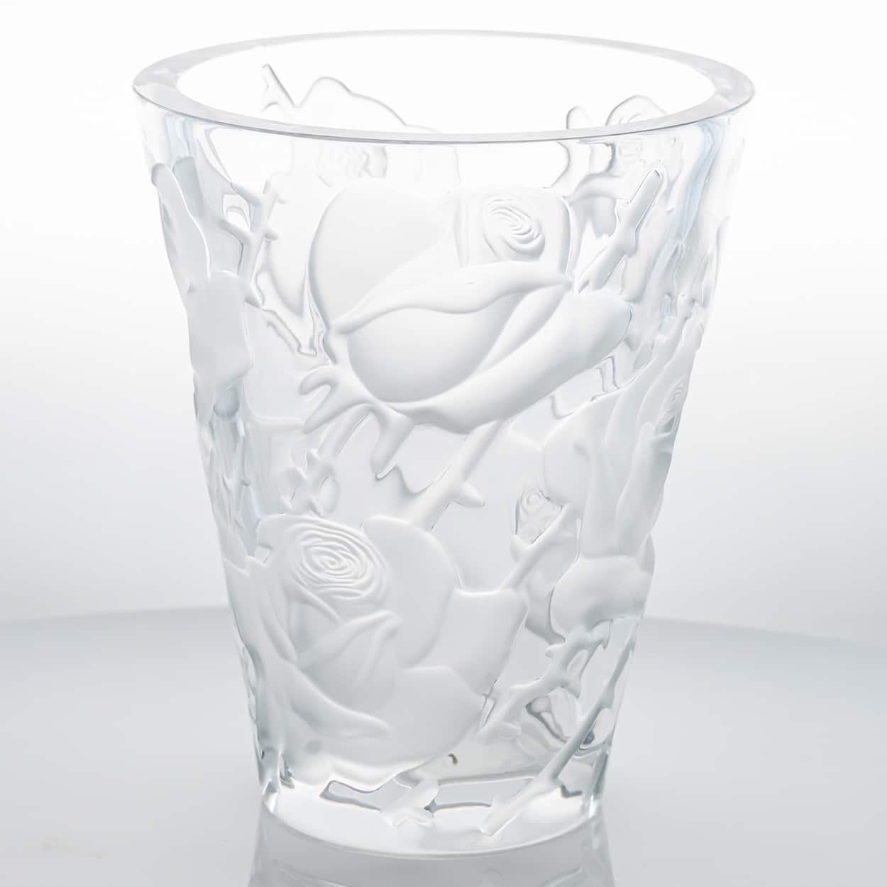 The Ispahan vase is a stunning creation crafted from fine crystal glass, showcasing an intricate design of roses, branches, and thorns in elegant relief. Its name, Ispahan, pays homage both to a famous rose variety and to the historic city of Isfahan in Iran, known for its beauty and artistic heritage.