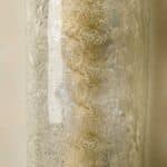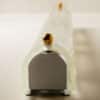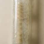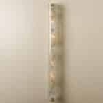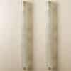 It consists of textured quality clear crystal tubular shade simulating ice on white frame and brass screws.