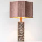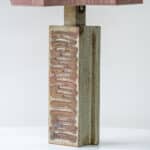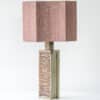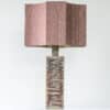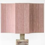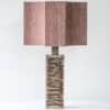 This lamp features a rectangular ceramic base, finished with a pink swirl glaze. Combined with a beautiful matching silk shade with eight sides.