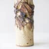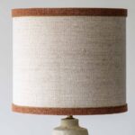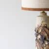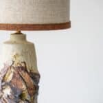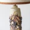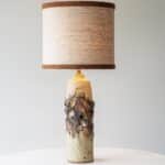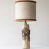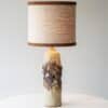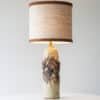 This decorative ceramic base by Marianne Koplin with cream and brown tones fits perfectly with the custom made silk shade with trimming in matching color.