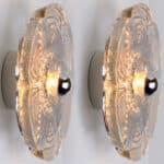 Pair of Flower wall lights/flush mounts from bubble glass on a round off white metal frame, circa 1970s, Germany. Designed by Heinz Neuhaus Leuchten. A clear design, with modern materials.