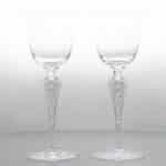 This exquisite pair of Baccarat glassware embodies the timeless elegance and refined craftsmanship for which the French crystal house is renowned. Each glass, with its slender silhouette and delicate curvature, captures light in a beautiful way.