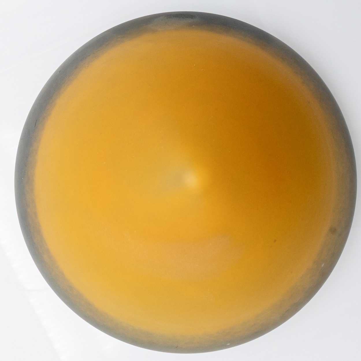 Pâte de verre is a technique in which glass powder is fused in a mold, resulting in a translucent, luminous effect. The lamp features a mushroom shape and emits a soft, atmospheric light.