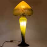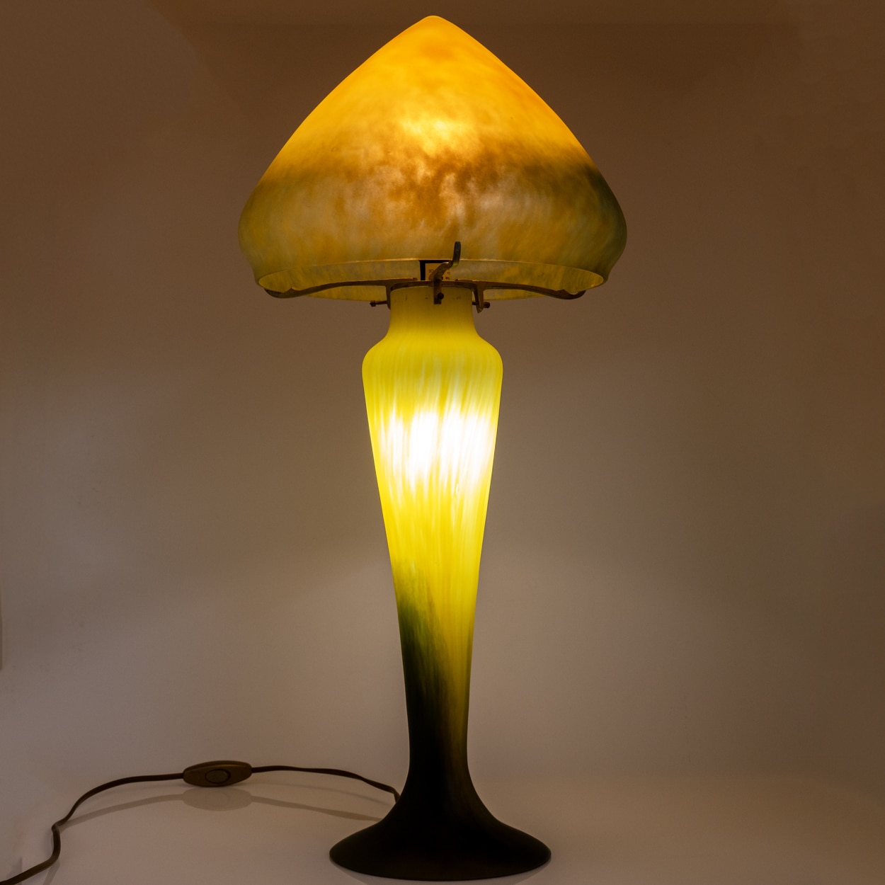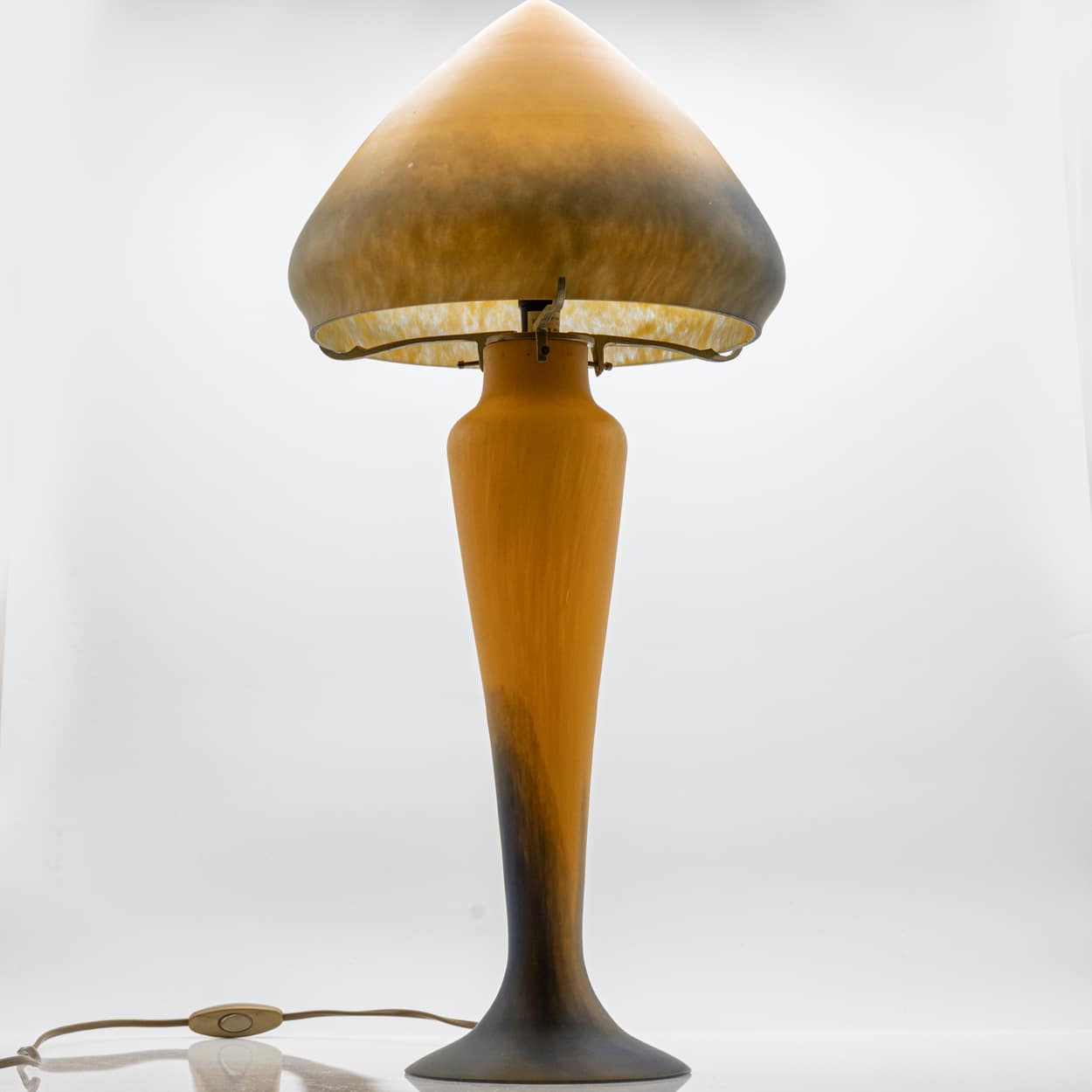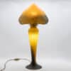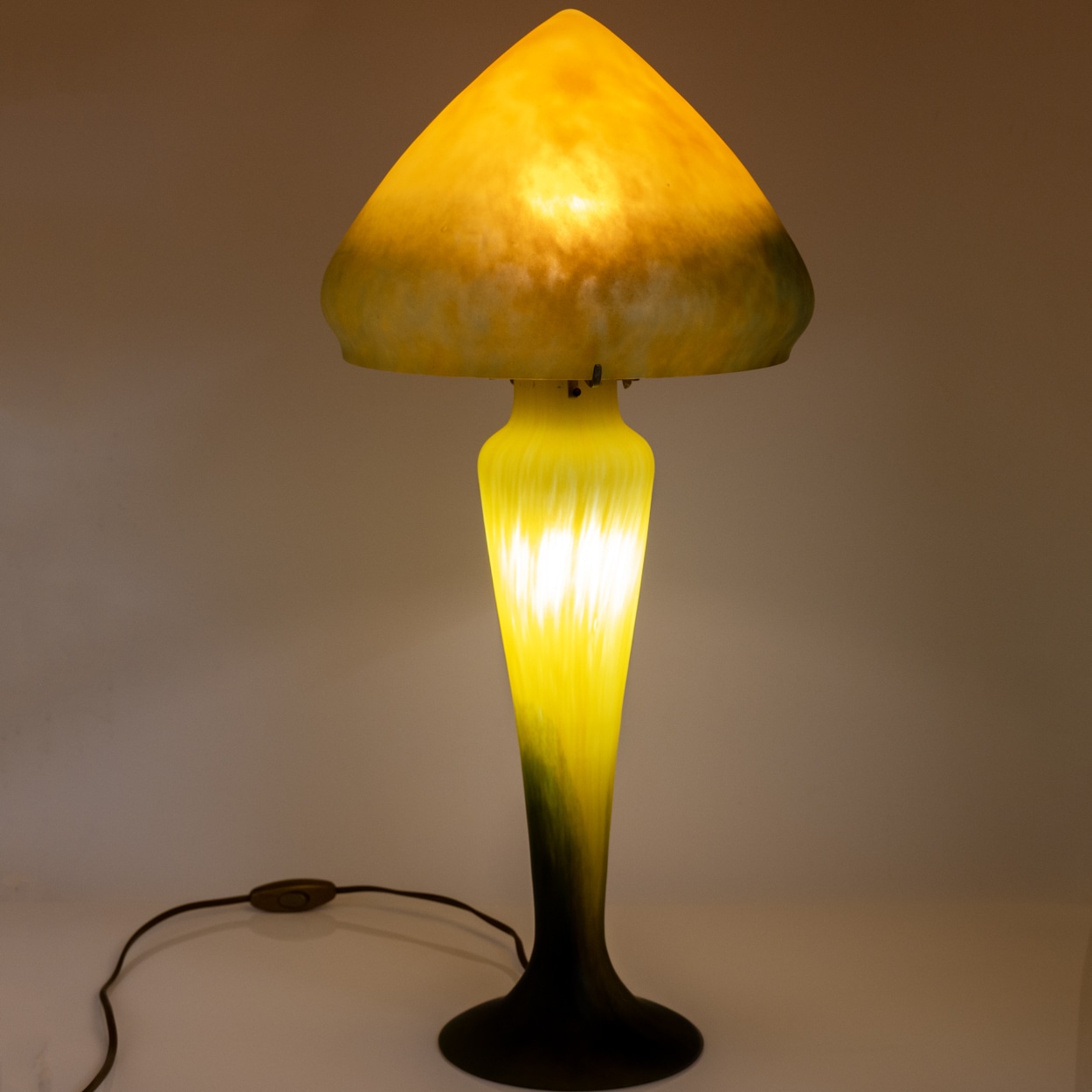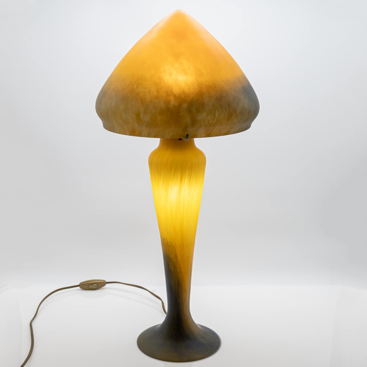 A stunning mushroom lamp made of pâte de verre, a classic design in the style of the Art Nouveau movement. The lamp is inspired by organic, natural forms.