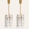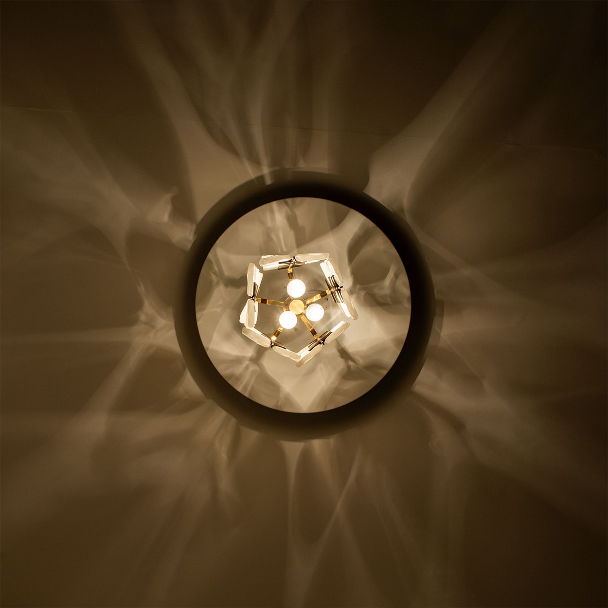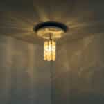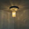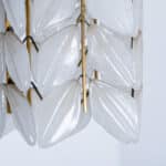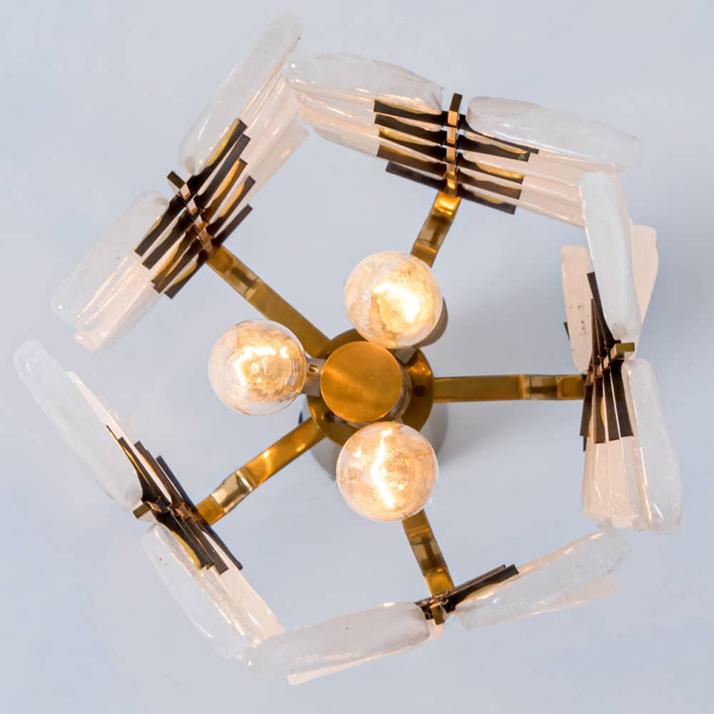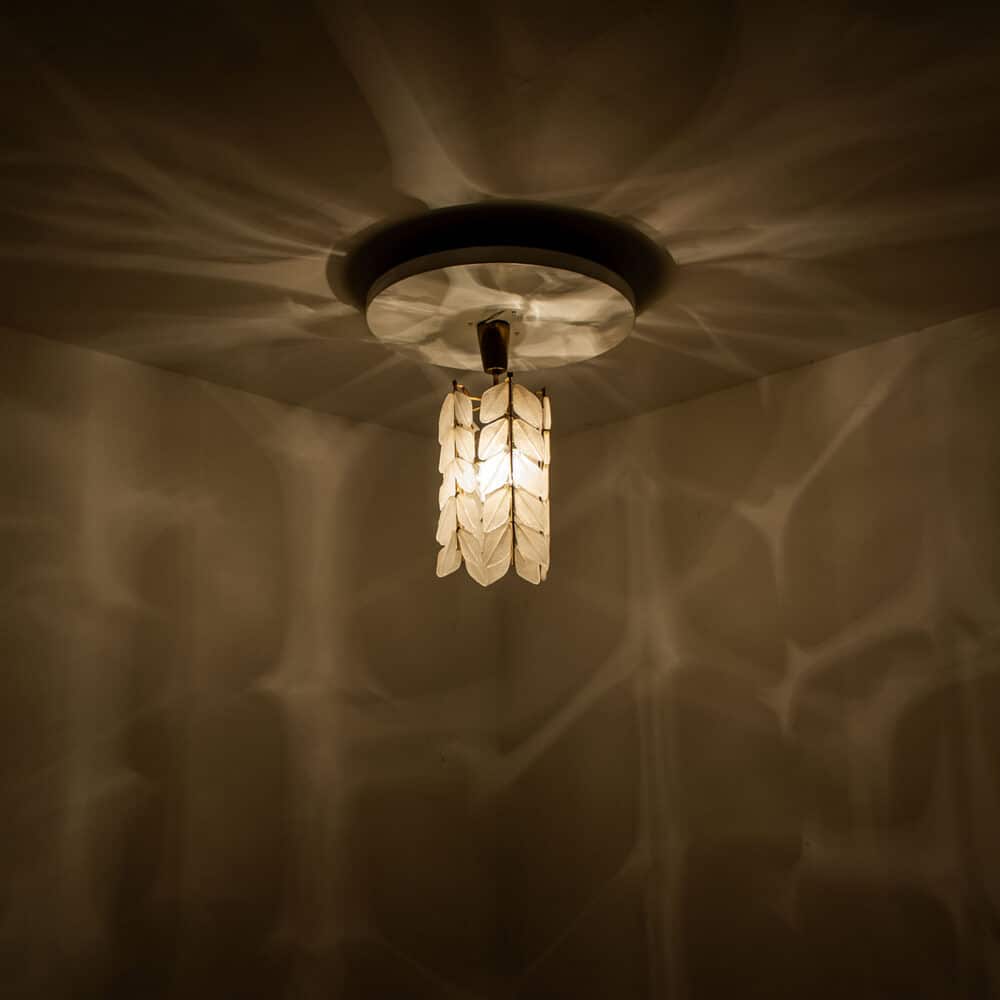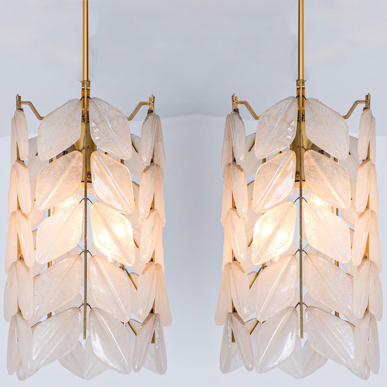 Cleaned and well-wired, in full working order and ready to use. The brass frame and glass leafs are in very good condition. The lights can be disassembled and the glass individually wrapped for easy transport. The fixture requires 3 E14 standard bulbs. Also LED compatible.