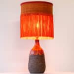 Red Volcanic Ceramic Table Lamp, Custom Orange Lampshade by R. Houben