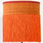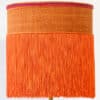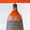 This base with glazed red ceramic with and black unglazed parts fits perfectly with the custom made lamp shade with fringes. A playful combination and a real eye catcher.