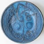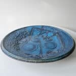 Round Decorative Ceramic Plate, Turquoise Blue Design from Denmark, 1960s