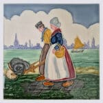Set of 4 Tiles with Farmers, by S.A. Faienceries de Bouffioulx, 1930s