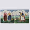 This is an amazing set of 4 original Art Deco handmade tiles by S.A. Faienceries de Bouffioulx, 1930s. A beautiful set with a painting of farmers on it. Stylish design. These tiles would be charming displayed on easels, framed or incorporated into a custom tile design.