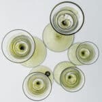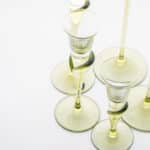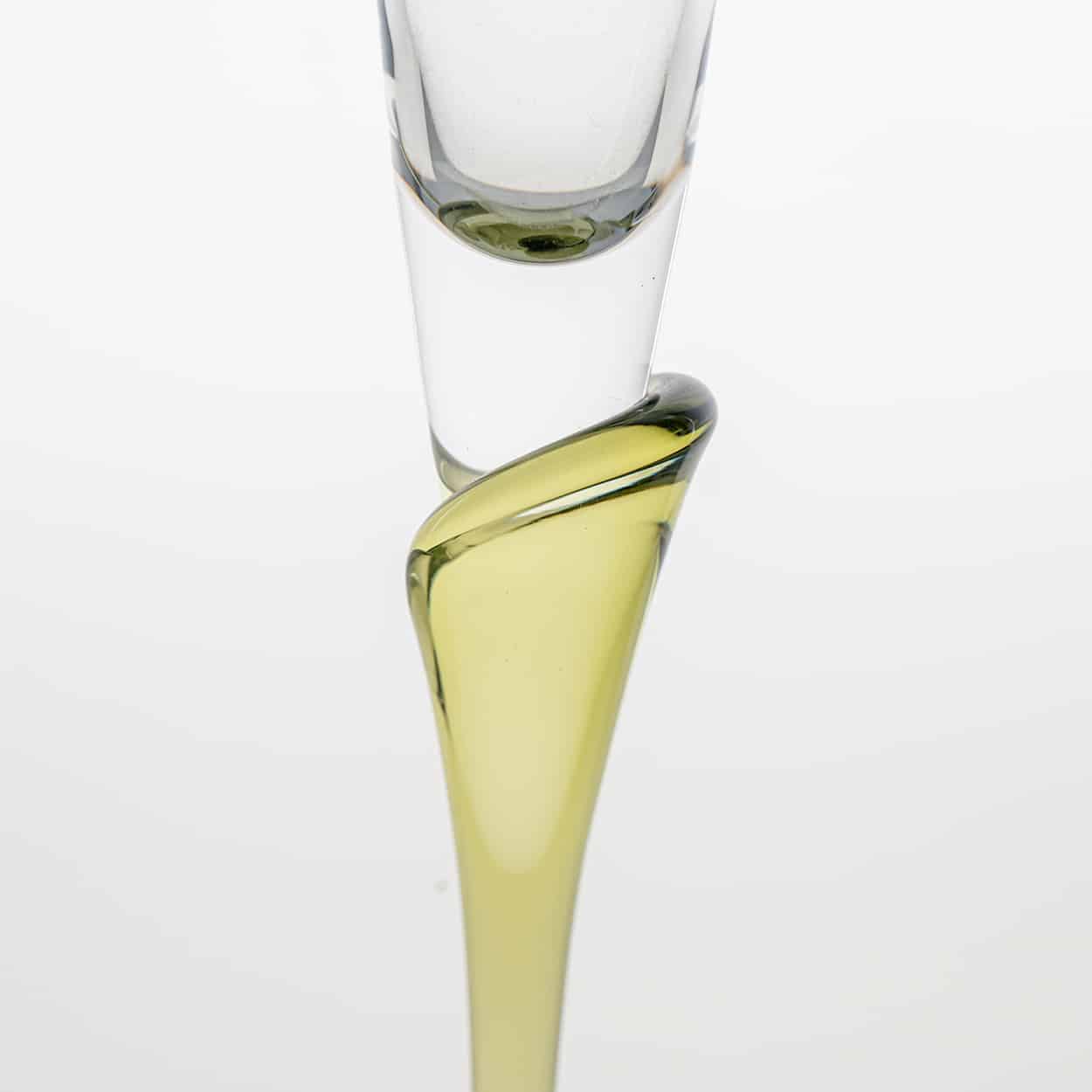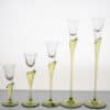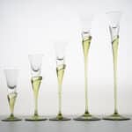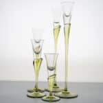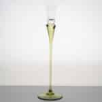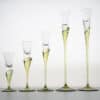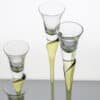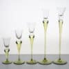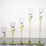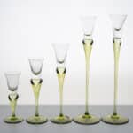 Made of clear and green glass, these candleholders are shaped like a tulip. A real collectors item.