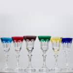 This elegant set of six crystal glasses from Cristal de Sèvres, is a stunning example of French craftsmanship and luxury. Each glass is handmade from lead crystal, offering exceptional brilliance, durability, and a clear, resonant sound. The different cuts in the glass illuminate beautifully.