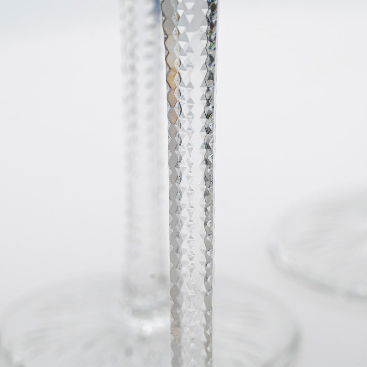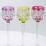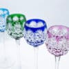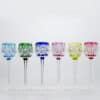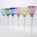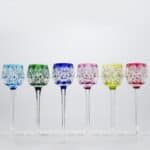 This exquisite set of glassware embodies the timeless elegance and refined craftsmanship. Each glass, with its delicate cuts in the colored glasses, the glass captures light in a beautiful way.