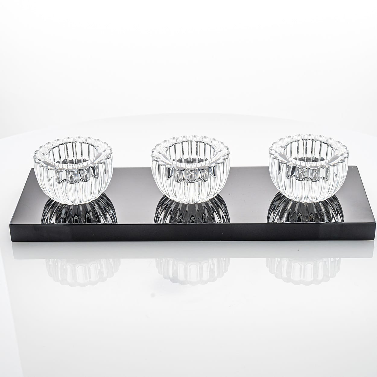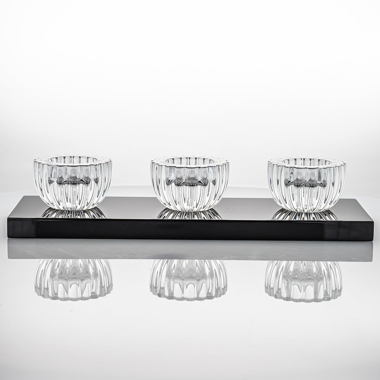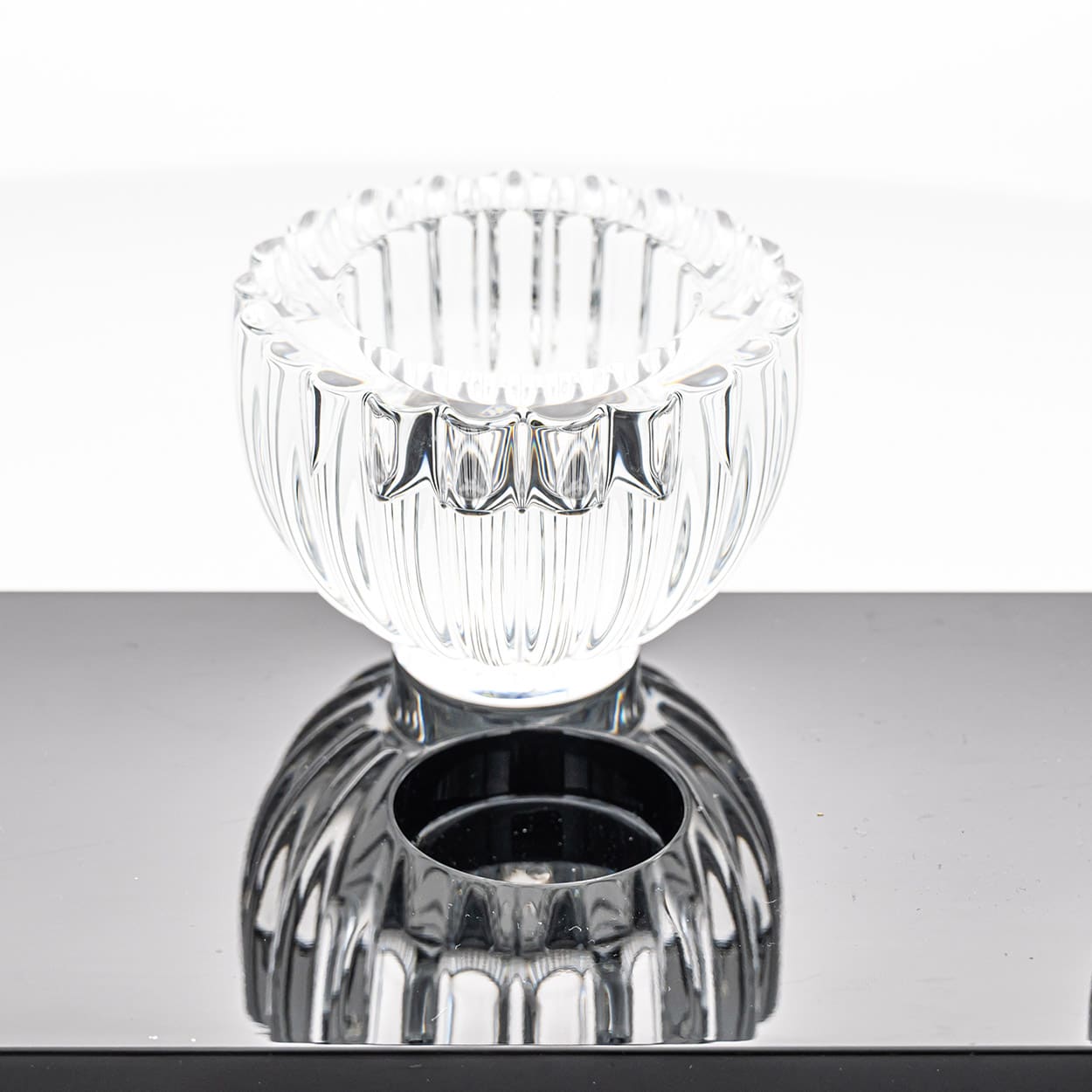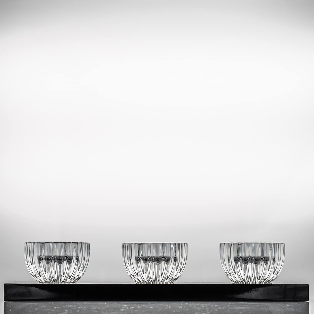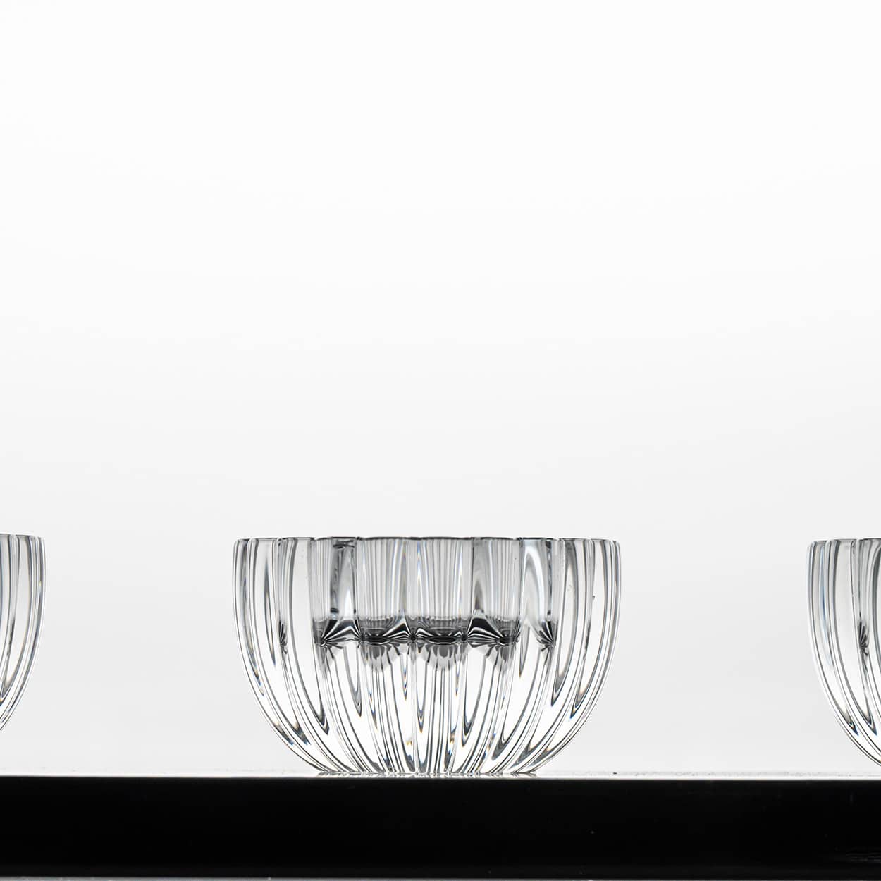 Because of the structured crystal glass, light reflects beautifully on it. Also gorgeous on a holiday table. Simple and minimalistic.
