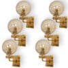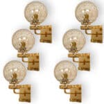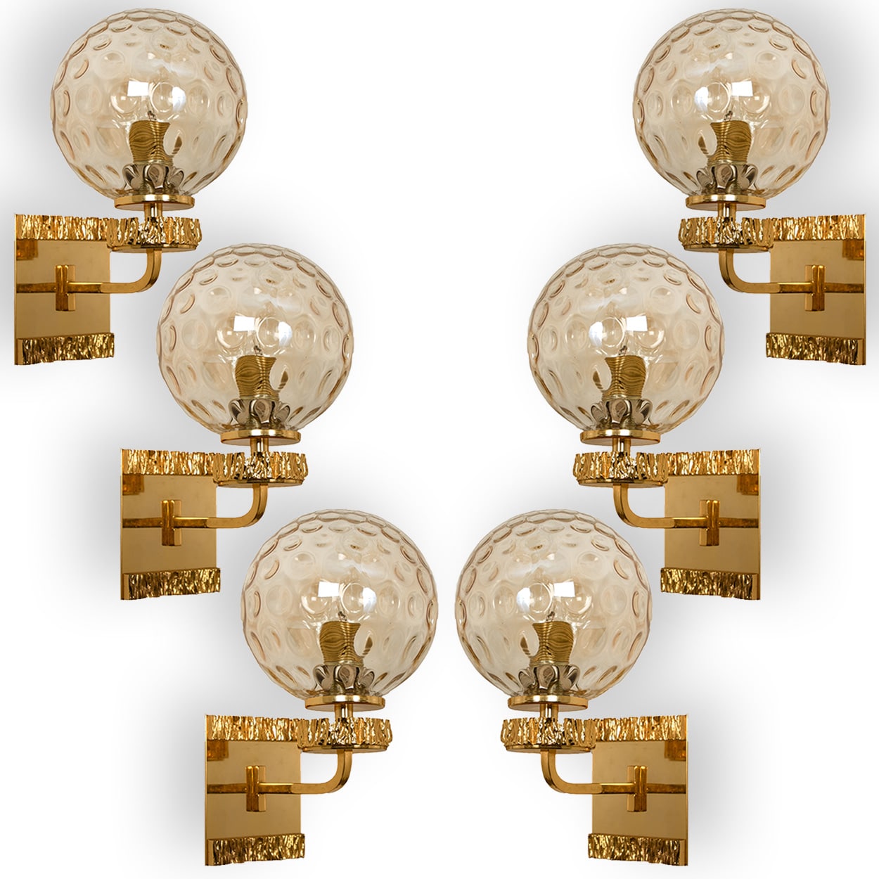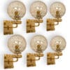 This stunning set of wall lights with each one glass bowl and gold-plated fittings was produced in the 1970s in the style of Brotto. Illuminates beautifully. Its commposed of glass globes on a brass frame. Elegant and fine, it is comfortable with all decor periods.