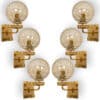 A stunning pair of golden sconces made in Germany, circa 1970-1979. It’s composed of glass globes on a brass frame. Best of the 1970s from Germany. High quality and in very good condition. Cleaned, well-wired and ready to use.