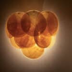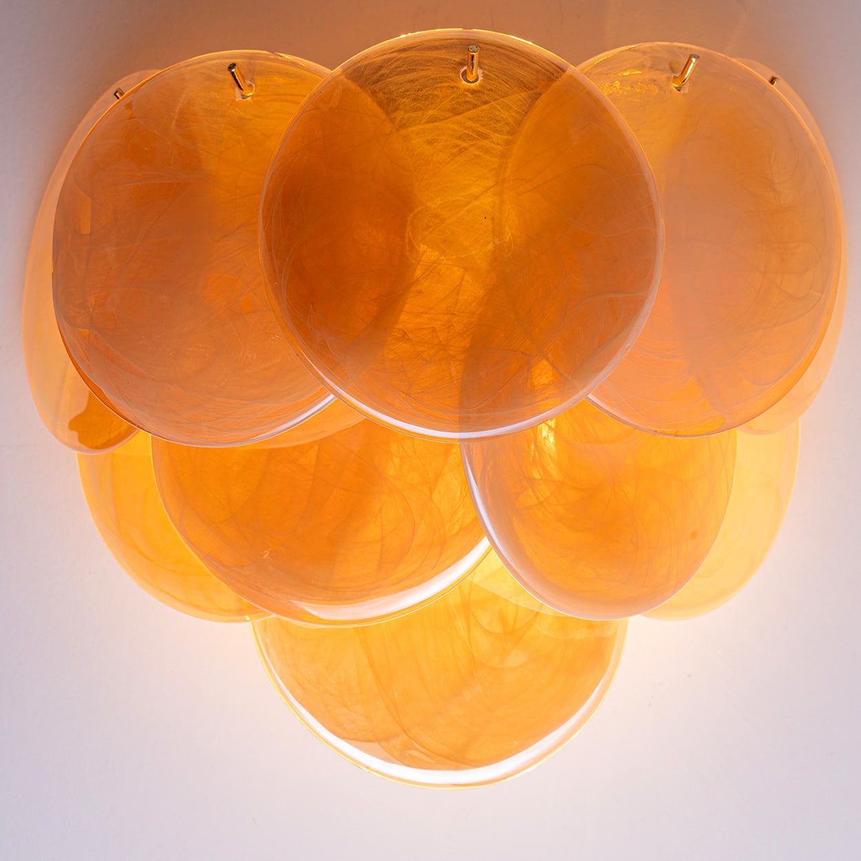 Several Large Murano Brown Glass Discs and Brass Wall Lights, Italy