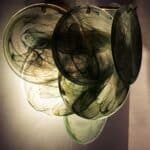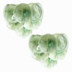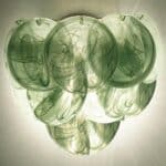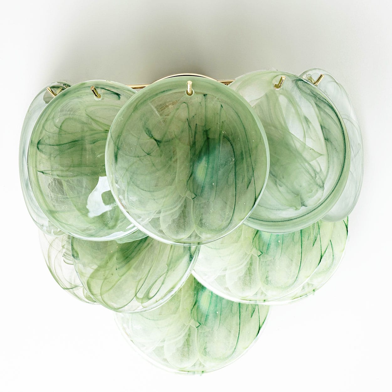 Several beautiful Large Murano wall lights with 10 green glass discs, with three layers of round glass discs with brass frame.