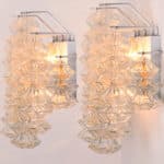 Mid Century Modern vintage glass chrome Pagoda sconces by Kalmar, circa 1969, Austria Vienna.