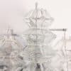 Each sconce shows 5 exceptional pagoda shaped glasses mounted on a white metal frame.