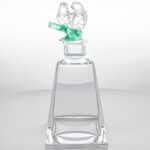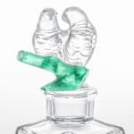 A delicate crystal carafe with two birds on top of it – made out of art glass. This carafe is called “Inseparables”, showing the love between the two birds.
