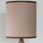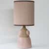 This soft pink ceramic base with beige tones fits perfectly with the custom made matching pink shade with warm brown trimming by R. Houben.
