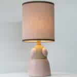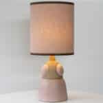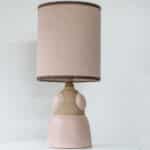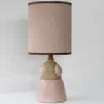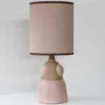 Soft Pink Beige Ceramic Table Lamp, Custom Made Silk Pink Lampshade by R. Houben