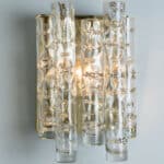 Wonderful hand blown Doria wall lamps. Manufactured in the 1960s. With textured and clear and gold structured glass pipes.