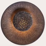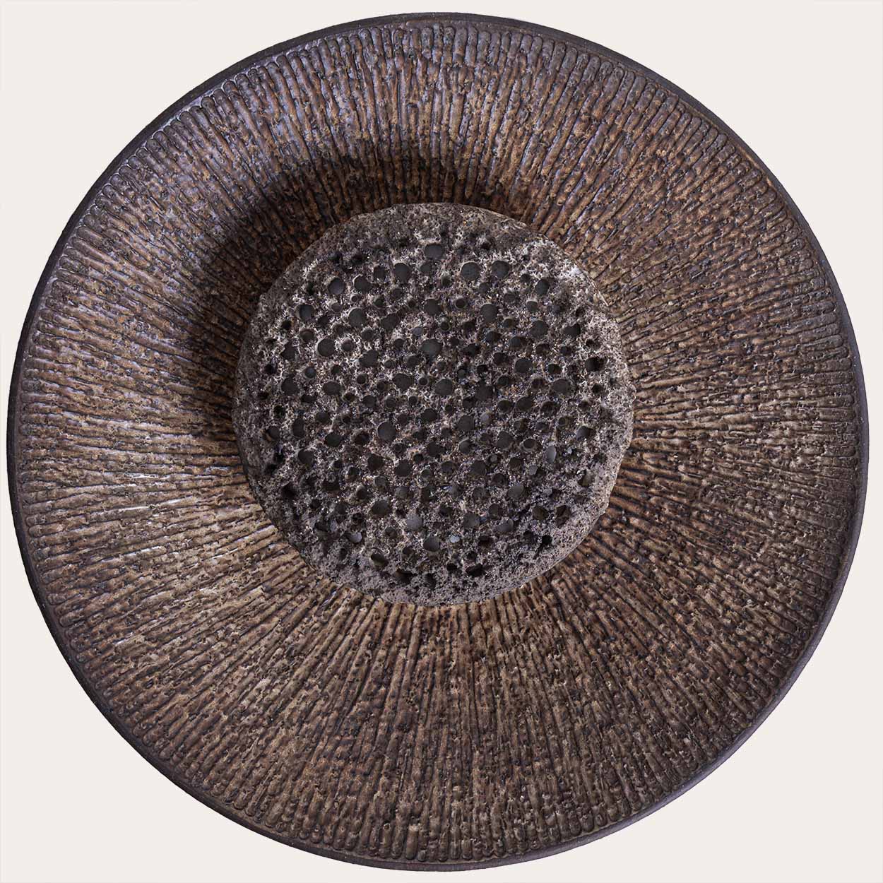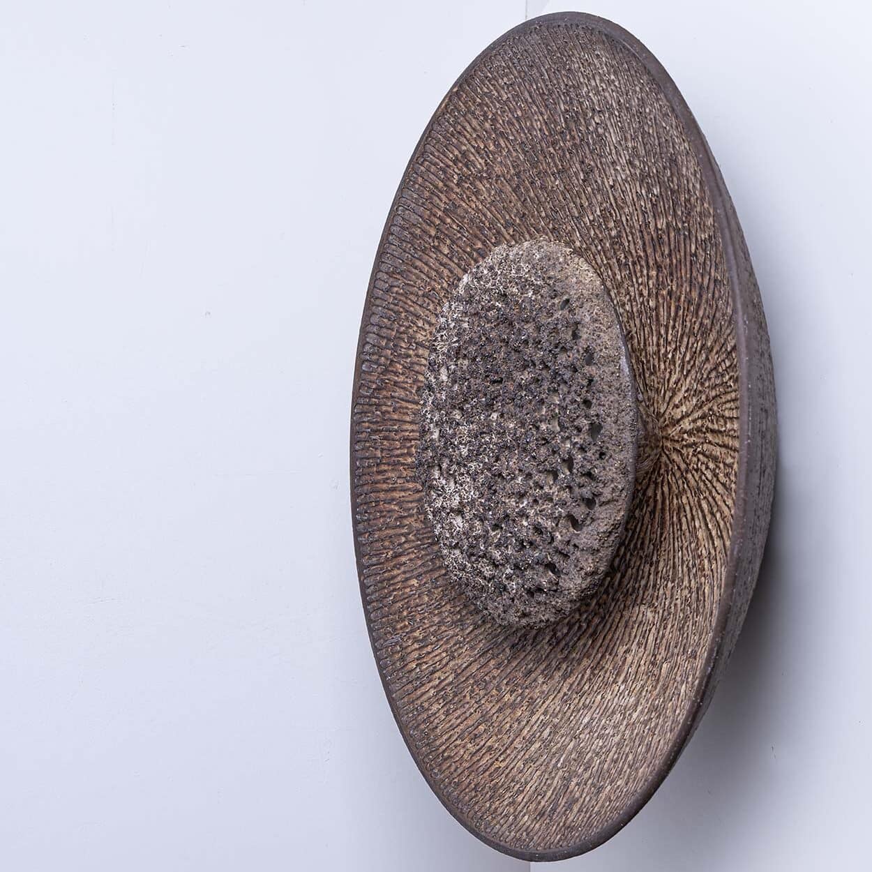 Spectacular circular ceramic wall light, with beautiful accents. Manufactured in Denmark in the 1970s.