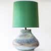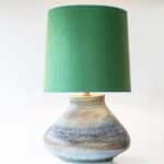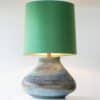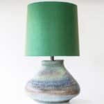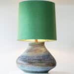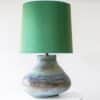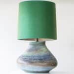 XL Multicolor Squat Bulbous Ceramic Lamp, Green Custom Lampshade by R. Houben