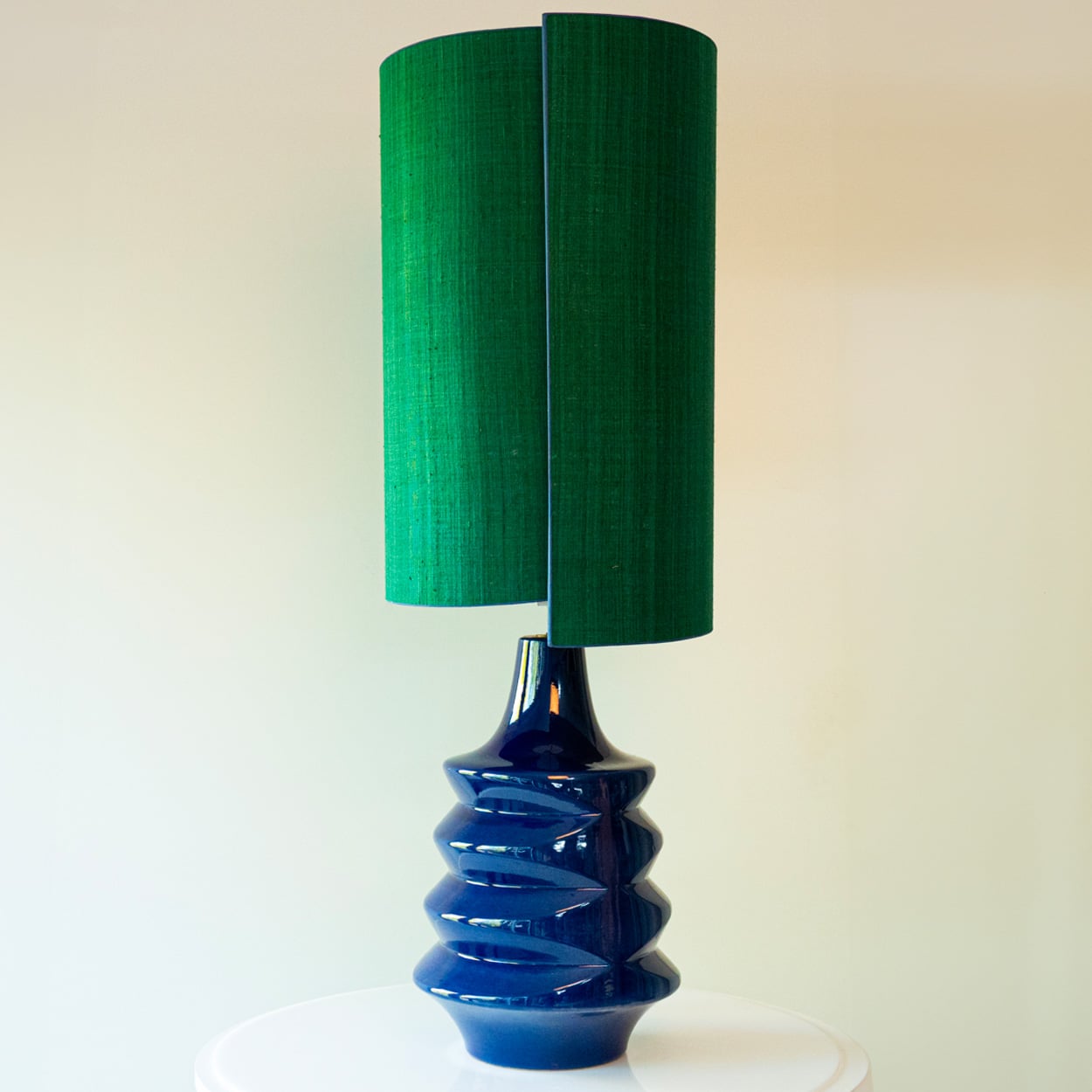 XXL Sapphire Blue Ceramic FLoor Table Lamp, Lampshade by R. Houben, 1970