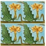 1 of the 18 Honey Yellow Flower Glazed Art Nouveau Relief Tiles, Maison Helman