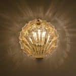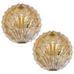 1 of the 2 Golden Ice Glass Shell Wall Sconces, 1960s