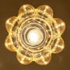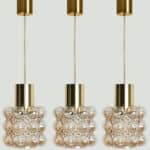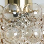 1 of the 3 beautiful bubble glass pendant lights designed by Helena Tynell for Glashütte Limburg, 1960. A classic design with brass details and beige cord, the hand blown amber glass gives a wonderful glow.