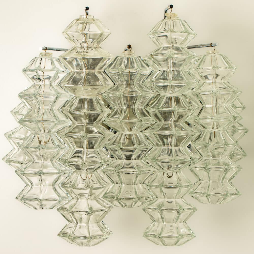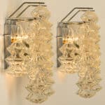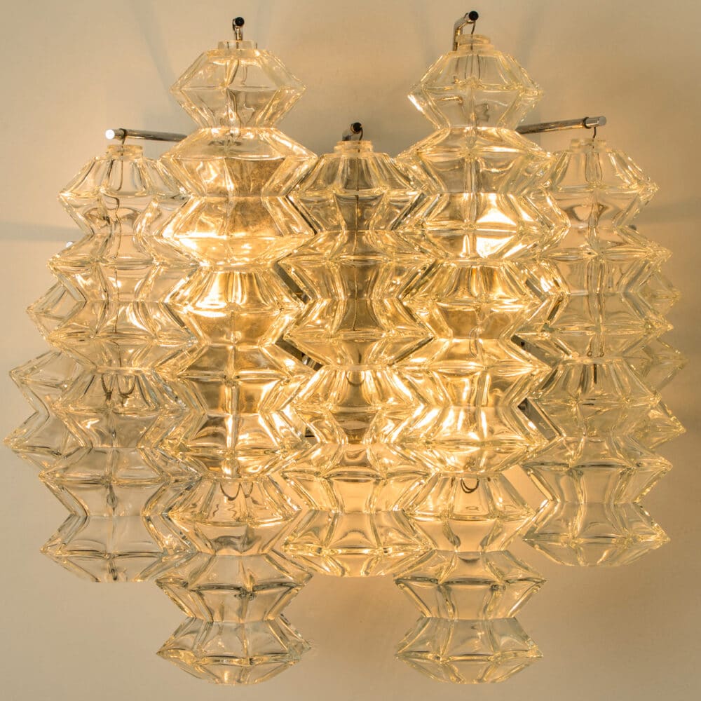 Mid Century Modern vintage glass chrome Pagoda sconces by Kalmar, circa 1969, Austria Vienna.