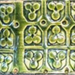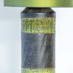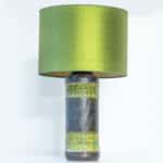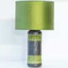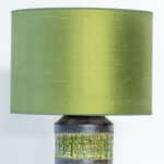 This base with dark and green colored glazed ceramics fits perfectly with the custom made green silk lampshade.