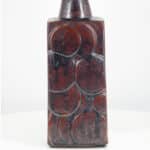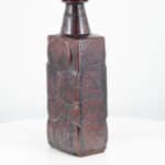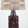 A brown ceramic floor lamp with circular pattern. Sculptural piece, made of handmade ceramic in warm tones, with a new custom made matching lampshade.