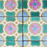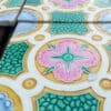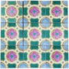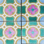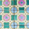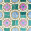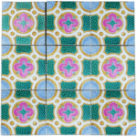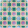 Stylized design in wonderful bright colors green, pink, ochre and light blue/gray. These tiles would be charming displayed on easels, framed or incorporated into a custom tile design.