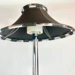 Impressive floor lamps model “Anna” for Ateljé Lyktan from the Scandinavian Mid-Century Modern design era. The “Anna” is the only model that Anna Ehrner designed for Ateljé Lyktan, but it is one of the company’s greatest successes. This floor version in chrome with a shade in black fabric.