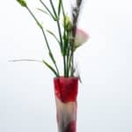 Large Flattened banjo form cabinet vase with red currant decoration in clear frosted clear glass internally suffused with yellow at the base and bright crimson, pink cameo overlay, signed  “Galle,” circa 1904-1918.