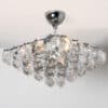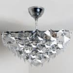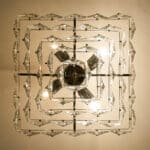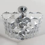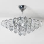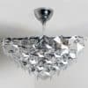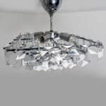 This modernist design chrome chandelier was designed by the Kinkeldey design team during the 1970s and manufactured in Germany. A very elegant Kinkeldey chandelier, it is comfortable with all decor periods. The crystals are meticulously cut in such a way that radiate the light of the bulbs in different directions. This chandelier is executed to a very high standard.