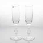 This exquisite pair of Baccarat glassware embodies the timeless elegance and refined craftsmanship for which the French crystal house is renowned. Each glass, with its slender silhouette and delicate curvature, captures light in a beautiful way. In the base is a face engraved.