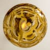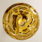 Doria ceiling light with an oval Murano amber glass and brass glass ball. Heavy quality, gives a wonderful light effect when it is on. Amber glass, brass. Period: 1970